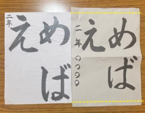 向かって左は私が手本を書いたものをコピーしたもの。