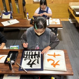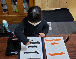 羊毛筆は大人が使うのも難しい。普通の筆…書道道具付属のコシのある筆と違い、全くコシがありません。だから、筆使いが違います。羊毛筆を使う教室は諫早で恐らく他にないと思います。使ったことがある方は「すごっ!」となる筆なのです。