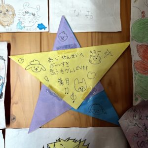 入会してすぐ葉月ちゃんからもらったプレゼント。大事に教室に貼ってます。