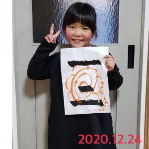 収筆(書き終わり)きちんと穂先が紙面と垂直になり筆を起こせていました。簡単そうに思いますが、なかなか出来ないのですよ~!