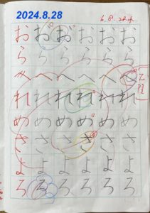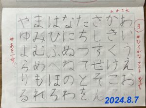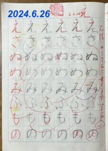 次回からカタカナの練習に入りますので、その時間がかかった理由も経験として活かして欲しいです。取り組み方も変わってくるんじゃないかな?