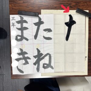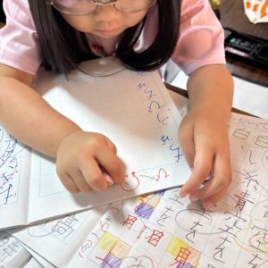 あと、【ぱ】等の右上にある○(半濁音)の書き方も教えました。