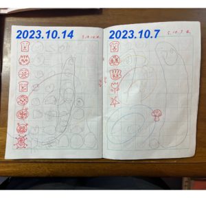 ひなちゃんは、“書けない・難しい”と少しでも思ってしまうと、完全に鉛筆が止まり黙り込んでしまっていたので、入会後しばらくは好きなキャラクターや“ひなちゃんが”書きやすいひらがな(ここ大切なポイントです!)を聞き出して手本で書いていました。