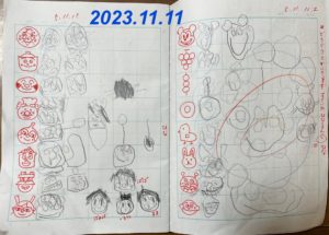 少しずつ、添削も始めました(赤ペンで書き入れています)。