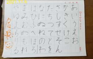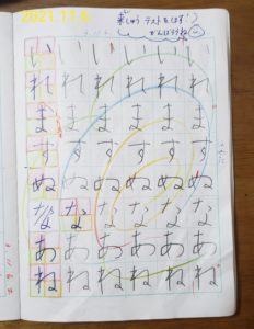 ひらがなテスト直前のノートは、