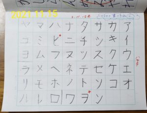 ひらがな同様、【ア】から一字ずつ練習をしています♬