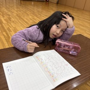 右手で書くことに不安をもつ保護者がいらっしゃいますが、鉛筆の持ち方や書く姿勢に、クセのないまっさらな状態からスタートできますので、考え方によってはものすごーーーーくラッキーなのですよ(*’▽’)☆彡