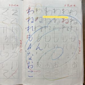 【ね・わ・れ】の二画目がなかなか上手く書けず、どうやったら書けるかな?と考えました。