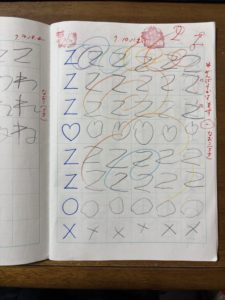 上手く書けたので、「Zがいい!」のリクエストに応えてひたすら手本でZを書いています(^▽^)