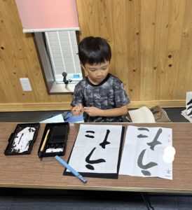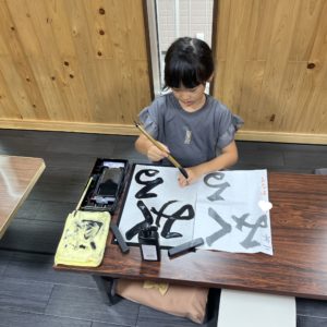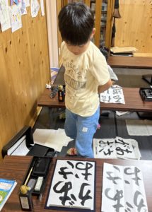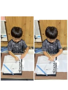 初めは使用に慣れず上手く書けないですが、姿勢が良いので後々線筆・字形良く書けるように必ずなります。