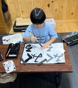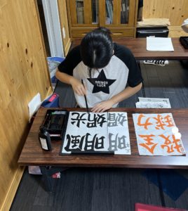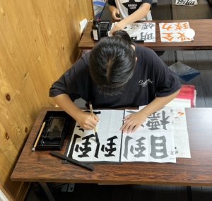昨年までは、毛筆課題【一~十】まで合格した生徒のみの指導としていましたが、今年は毛筆指導を受けている生徒まで枠を広げ指導しました。