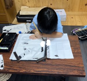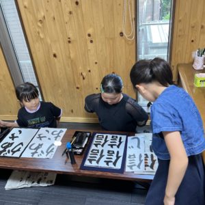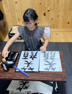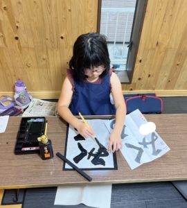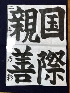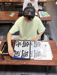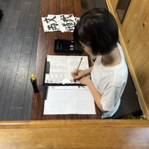 課題は何とか書けても、名前入れ(小筆使用)で四苦八苦でして、初めて小筆を使う生徒には字形・見栄え云々より、提出する作品を仕上げることを目標に指導しました。