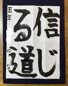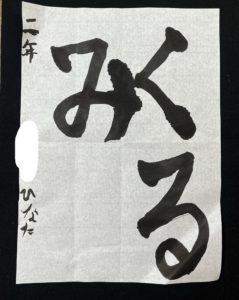 小学2年生。穂先の上げ下げが難しそうでしたが、とても美しい姿勢で書いています。