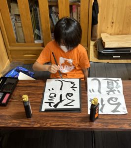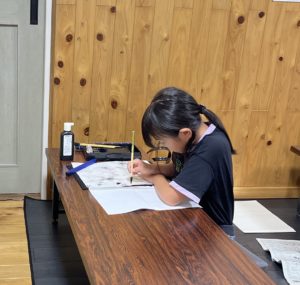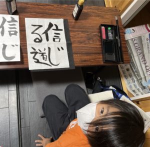 課題によっては、半紙の折り方を工夫しないと名前が入らないものもありました(;´・ω・)