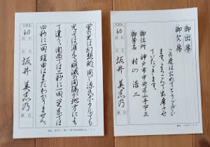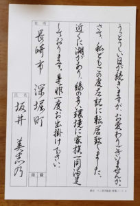 草書もあり、読めない字があると思います。3行目下、“家族一同満足”です。“満”は中々読めないかな(・・;)?