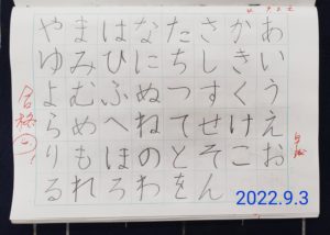 こちらの生徒は、次回レッスンからカタカナの練習に入ります。