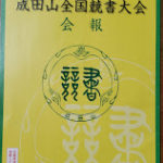 2019年12月17日 / 最終更新日時 : 2019年12月17日 河邉 愛 ご案内 第36回成田山全国競書大会、出品しませんか?&レッスン後のスタンプ廃止について 今年もやって来ました!成田山全国競書大会! 全国で競う書道の大会です。 今年で36回目の歴史ある競書大会です。 出品できる生徒さまにはご案内をお渡しします。 課題は自由、毛筆作品の出品になります。 出品料は […]