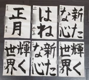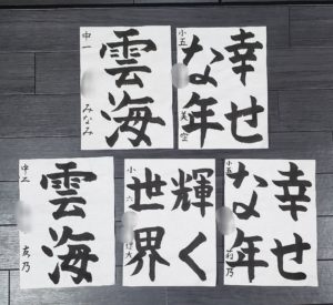 さて、今回は生徒の1月毛筆作品をご紹介しますね♪